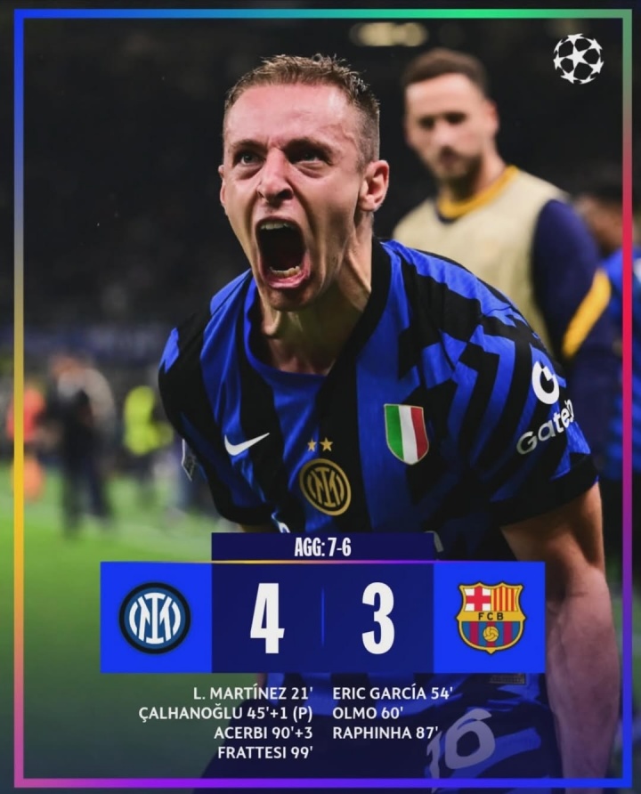 首回合,巴萨主场两度落后两度追平。次回合在米兰进行,巴萨再次0-2落后的情况下扳平比分。拉菲尼亚第87分帮助巴萨反超比分,随后国米老将阿切尔比神兵天降,将比赛拖入加时,最终弗拉泰西乱战中冷静弧线球绝杀。比赛第二天早上,各大媒体纷纷以“感谢国米和巴萨”作为头条新闻,整个欧洲都在回味这场令人难忘的精彩对决。