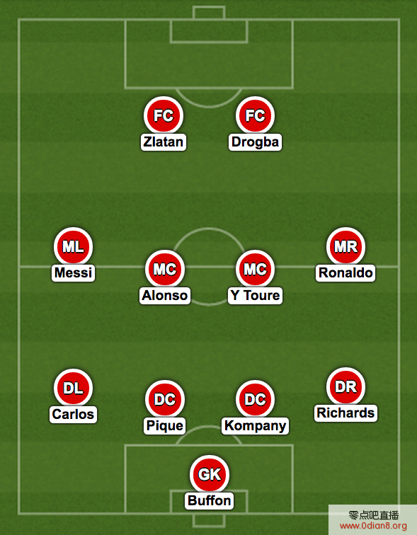 中场:梅西、阿隆索、亚亚-图雷、C罗